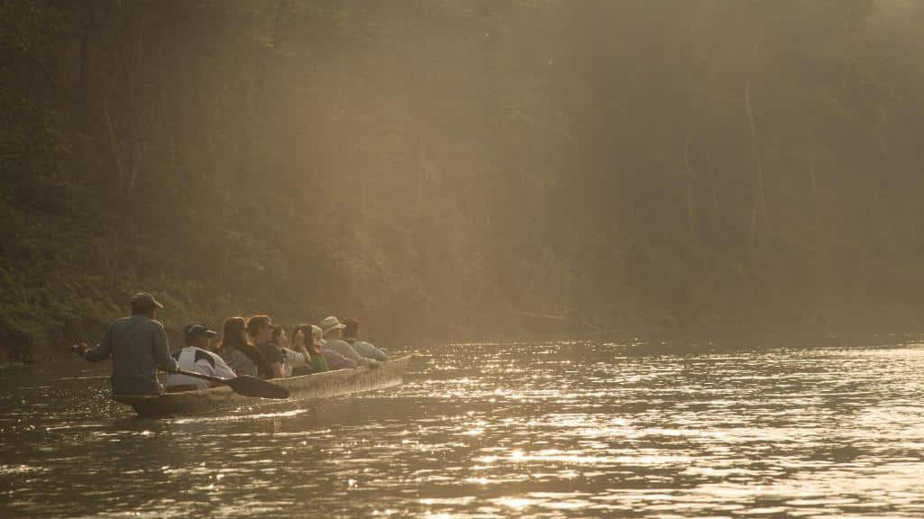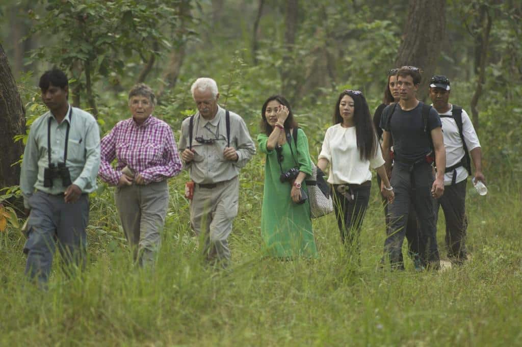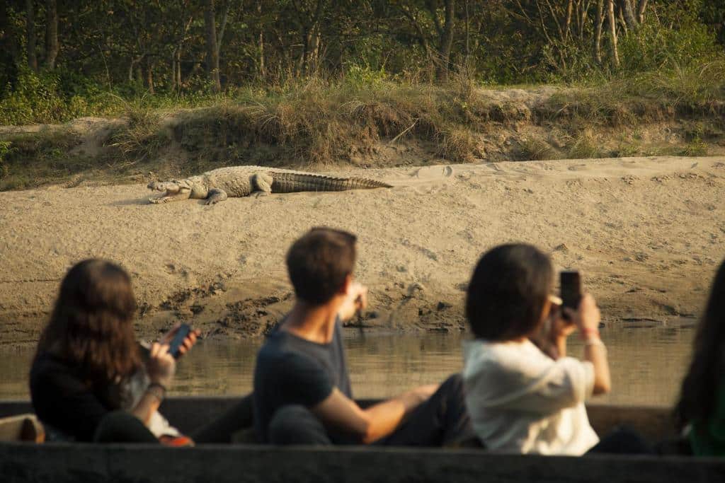 Canoe și Drumeție în junglă: După-amiaza, vă veți bucura de o plimbare liniștită cu canoea pe râul Rapti. Este o oportunitate excelentă de a admira viața acvatică a parcului, inclusiv crocodilii și diverse păsări de apă, într-un cadru de o liniște deplină. Urmează o drumeție ghidată în junglă, condusă de un expert, pentru a explora subarboretul dens și a înțelege mai bine biodiversitatea și ecosistemul din Chitwan.